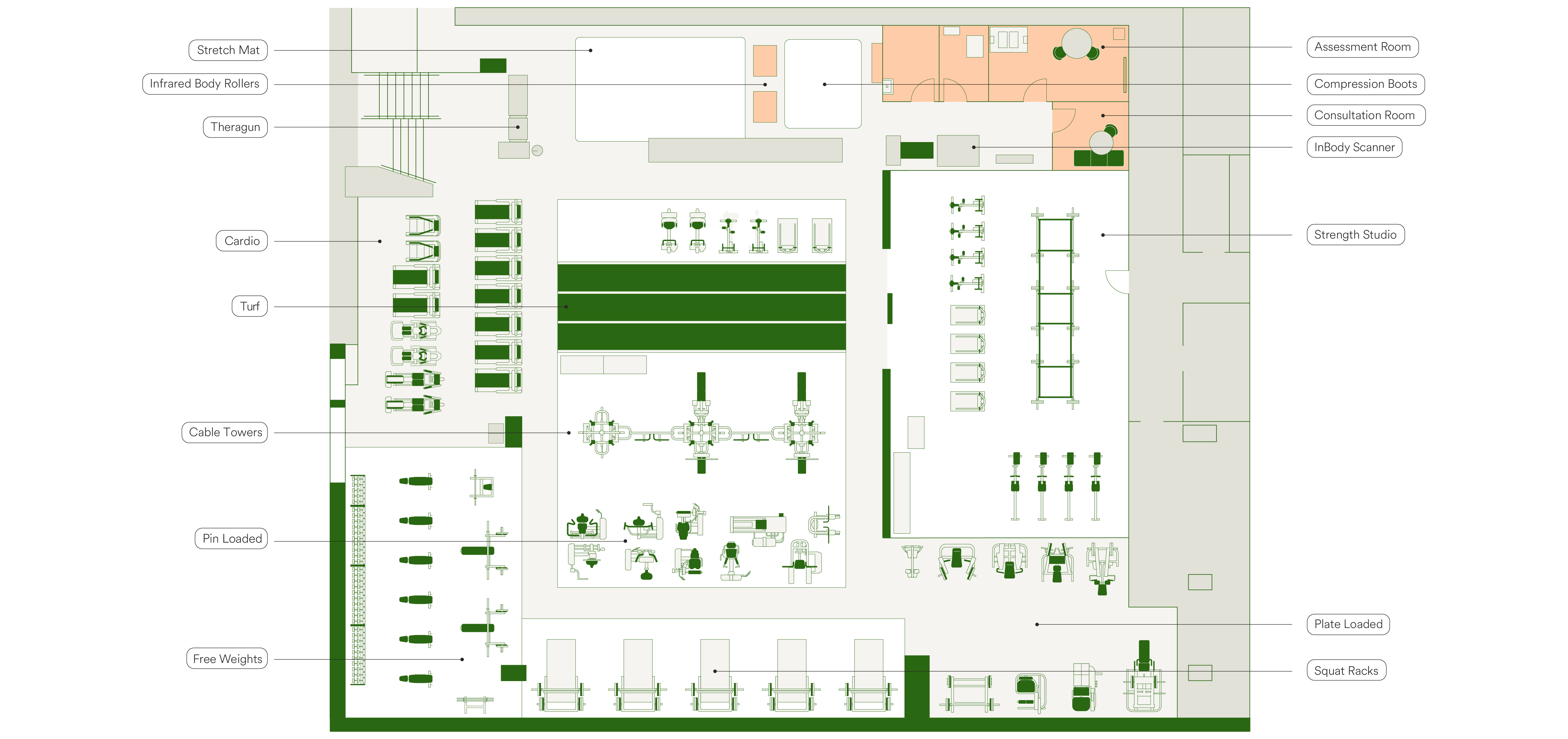 Support mobility and muscle recovery with dedicated space for stretching, foam rolling, and mindful cooldowns.